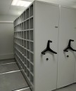 Мы установили передвижные стеллажи серии Т, с нагрузкой на полку до 80 кг и адаптировали их внутреннее содержание под хранимое. Одну секцию стеллажа сделали с оцинкованными полками, для повышения их прочности при ежедневной работе, и выдвижными ящиками с разделителями для мелких деталей. Остальные секции сделали ячеистого формата для адресного хранения.