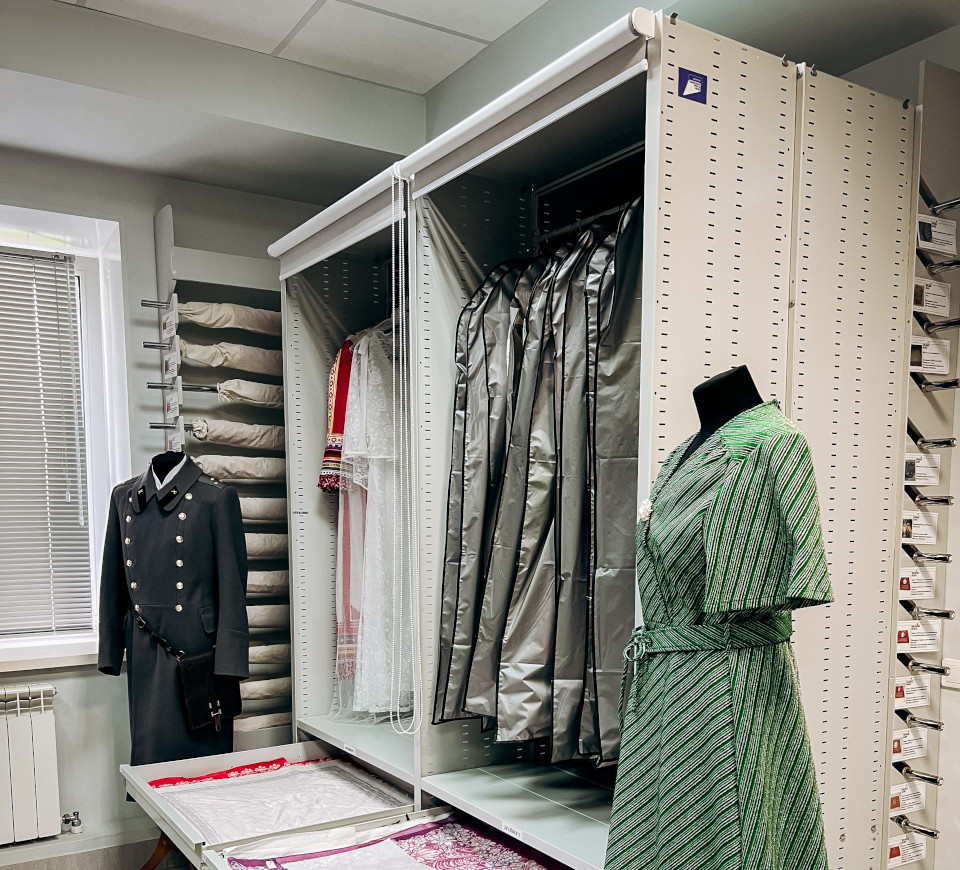 Изготовим передвижные стеллажи для хранения одежды на складе или в фондах музея с доставкой с завода производителя в города Воронежской области и России.
